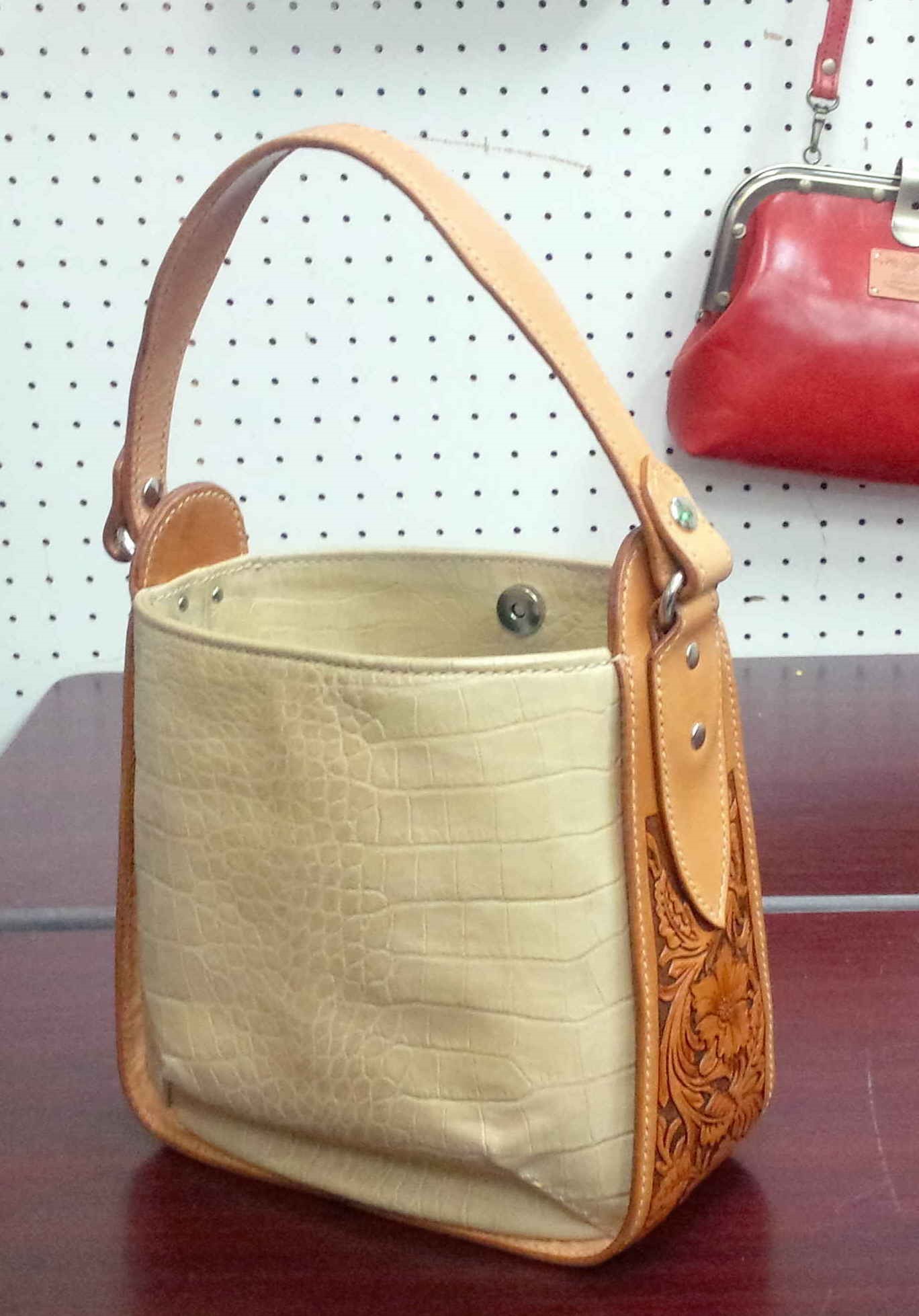 | 革細工が好きで若い時から作っています。現在も続けています。ものを作るって本当に楽しいです。展示してくれるお店があって、お客さんに買ってもらえると励みになります。 |